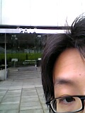 その本社前にいる
